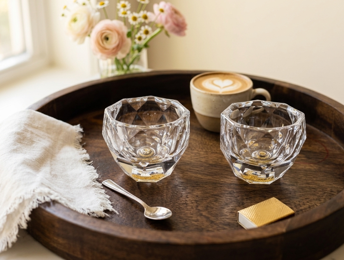 The refined multi-faceted diamond design reflects light beautifully, creating a sophisticated look for any table setting. Its thick, double-bottom base ensures stability, while the smooth hand-polished finish provides a comfortable grip.