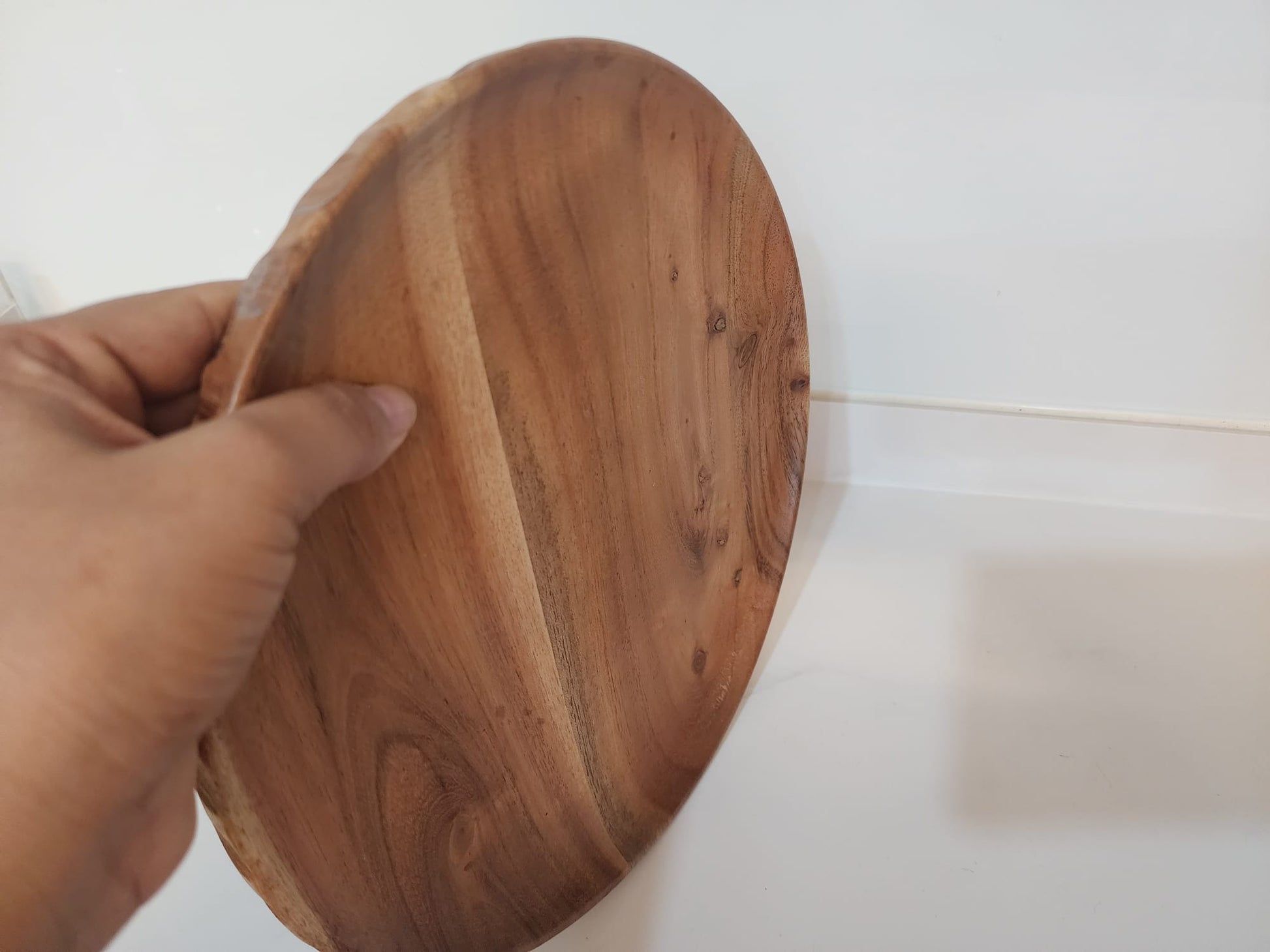 Handcrafted 25 cm acacia wood serving tray from FEAWS Prithvi Series with carved edges, natural grain finish, and eco-friendly design—perfect for elegant and rustic dining.