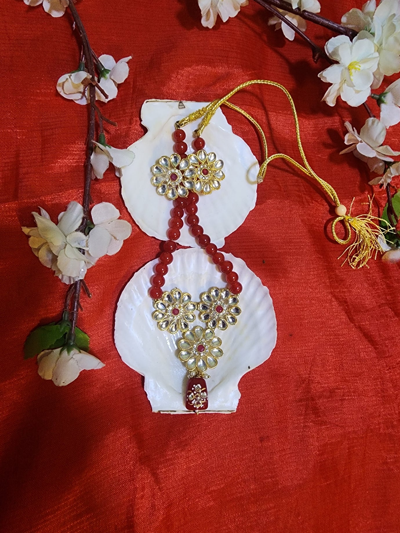 Add a touch of timeless elegance to your festive and wedding look with this beautifully crafted Kundan Necklace Set adorned with rich ruby beads. Designed with premium gold-tone detailing and traditional hand-set stones, this jewelry set brings a royal charm to every outfit.