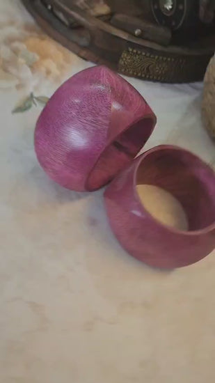 Mango Wood Big Cuff Bangle Set – Walnut & Pink color