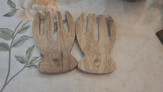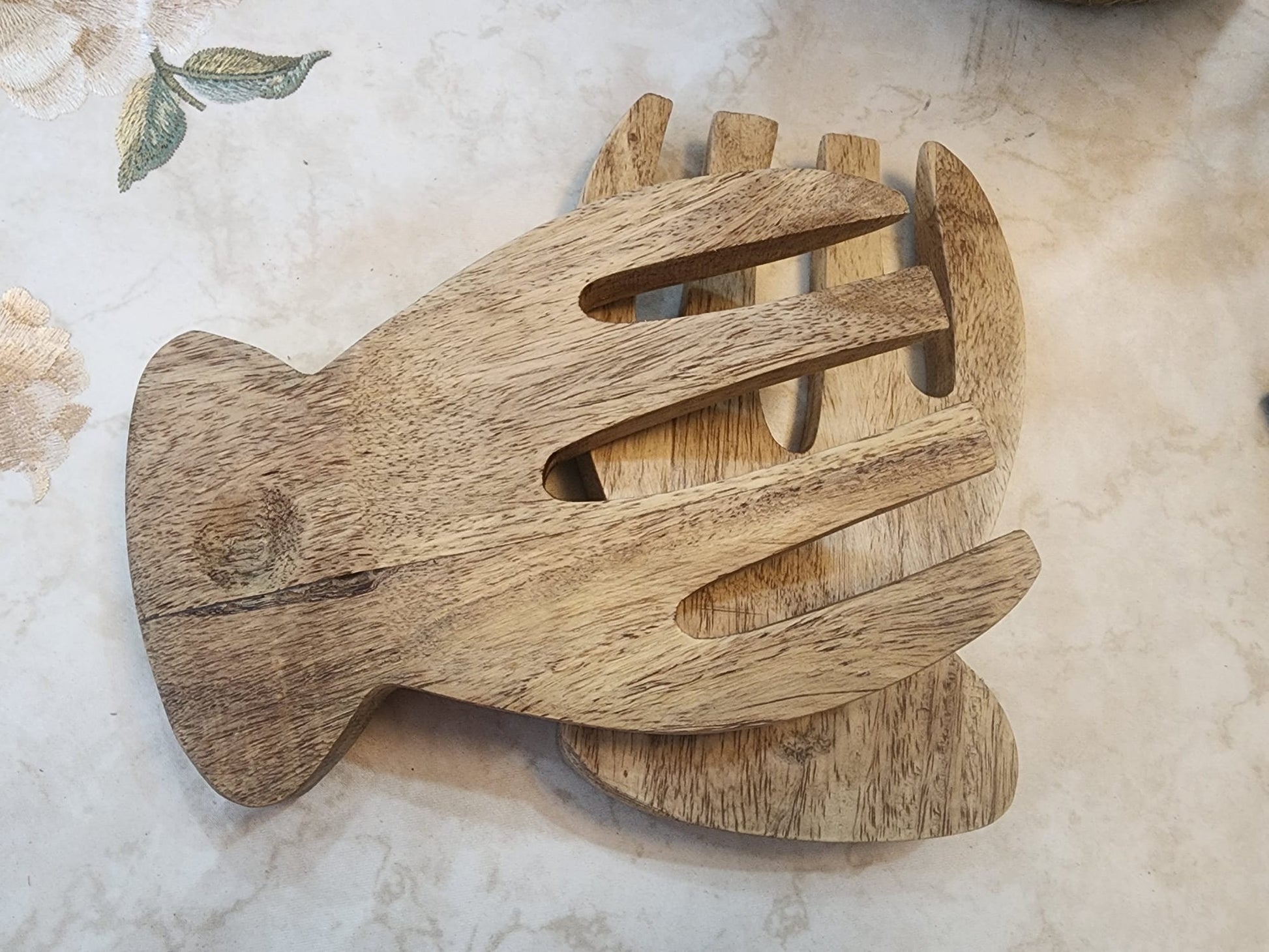 Meraki Wooden Salad Serving Utensils (Pair) - Hand Shape Salad Server Spoon