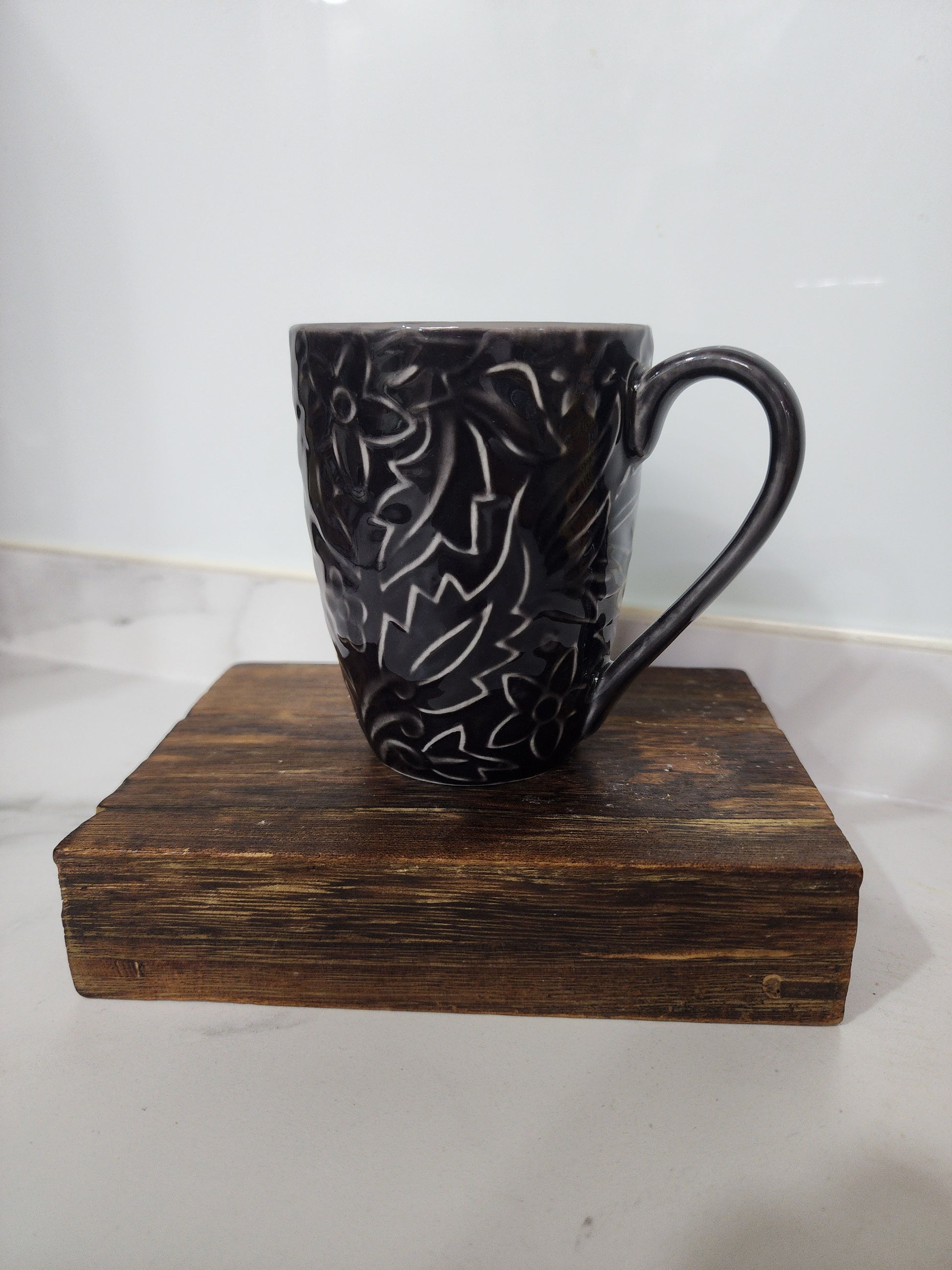 Each mug is individually crafted, making subtle variations in carving and glaze natural, so every piece is unique. Perfect for coffee, tea, or hot chocolate, the Noir Leaf Carved Mug adds a touch of contemporary artistry to your drinkware collection or makes a thoughtful gift.