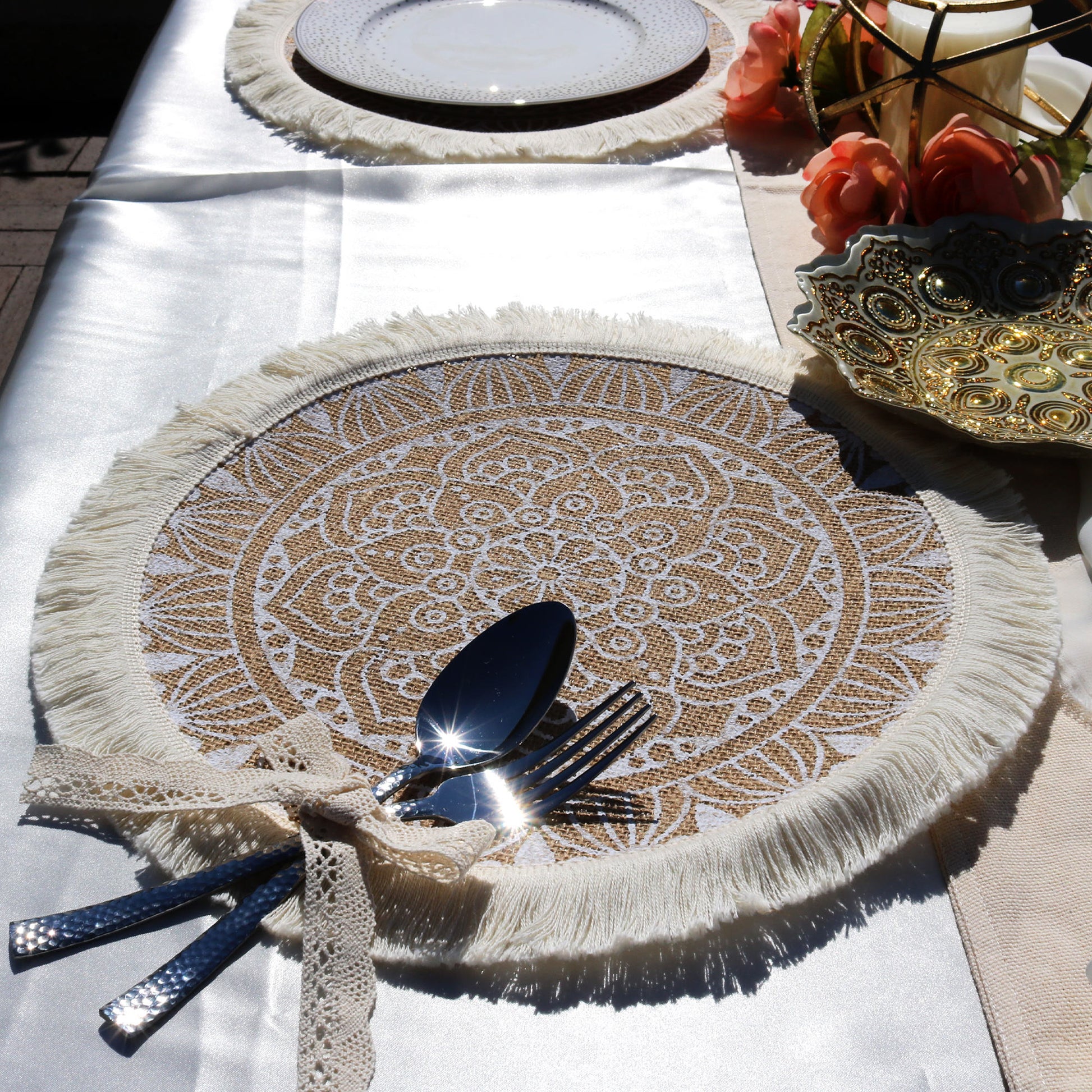 Nordic Elegant Linen Macrame Placemats – Circular with Tassels-Set of Two