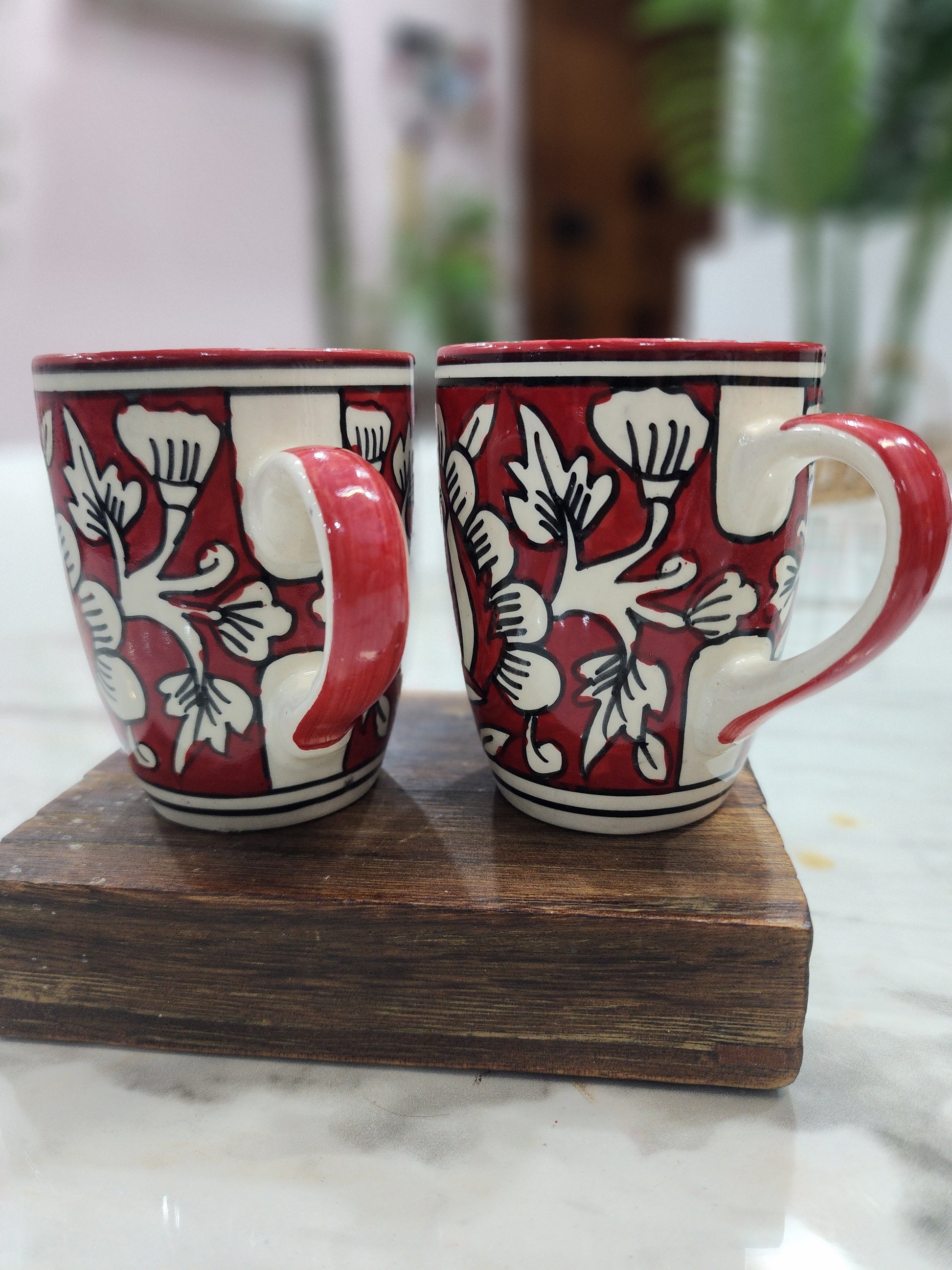 Brighten your daily tea or coffee ritual with the Ruby Petal Mug, where handcrafted artistry meets vibrant design. Each mug is carefully hand-painted in rich ruby-red floral motifs, celebrating the beauty of nature and the warmth of handmade craftsmanship. Its glossy glazed finish adds a touch of elegance, making it perfect for both everyday enjoyment and special occasions.