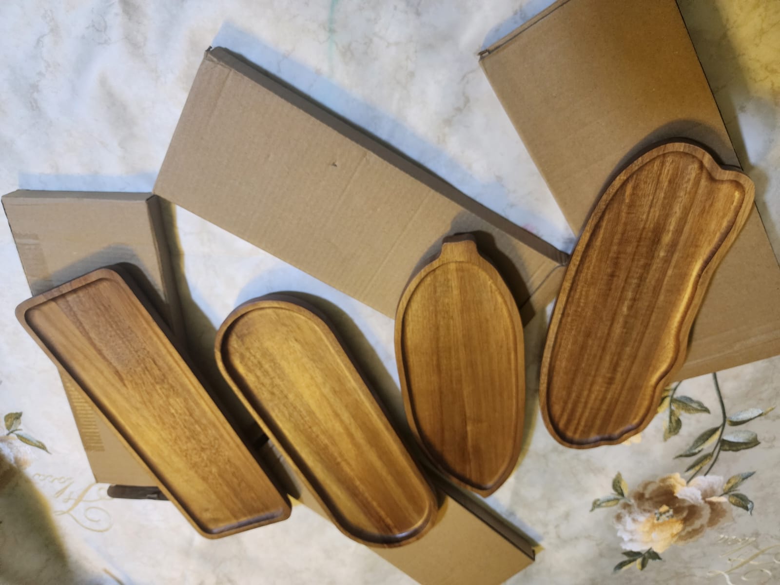 Set of 4 pieces of Eco-friendly Acacia Wood Leaf/cloud/rectangular/oval Shaped Wooden Tray