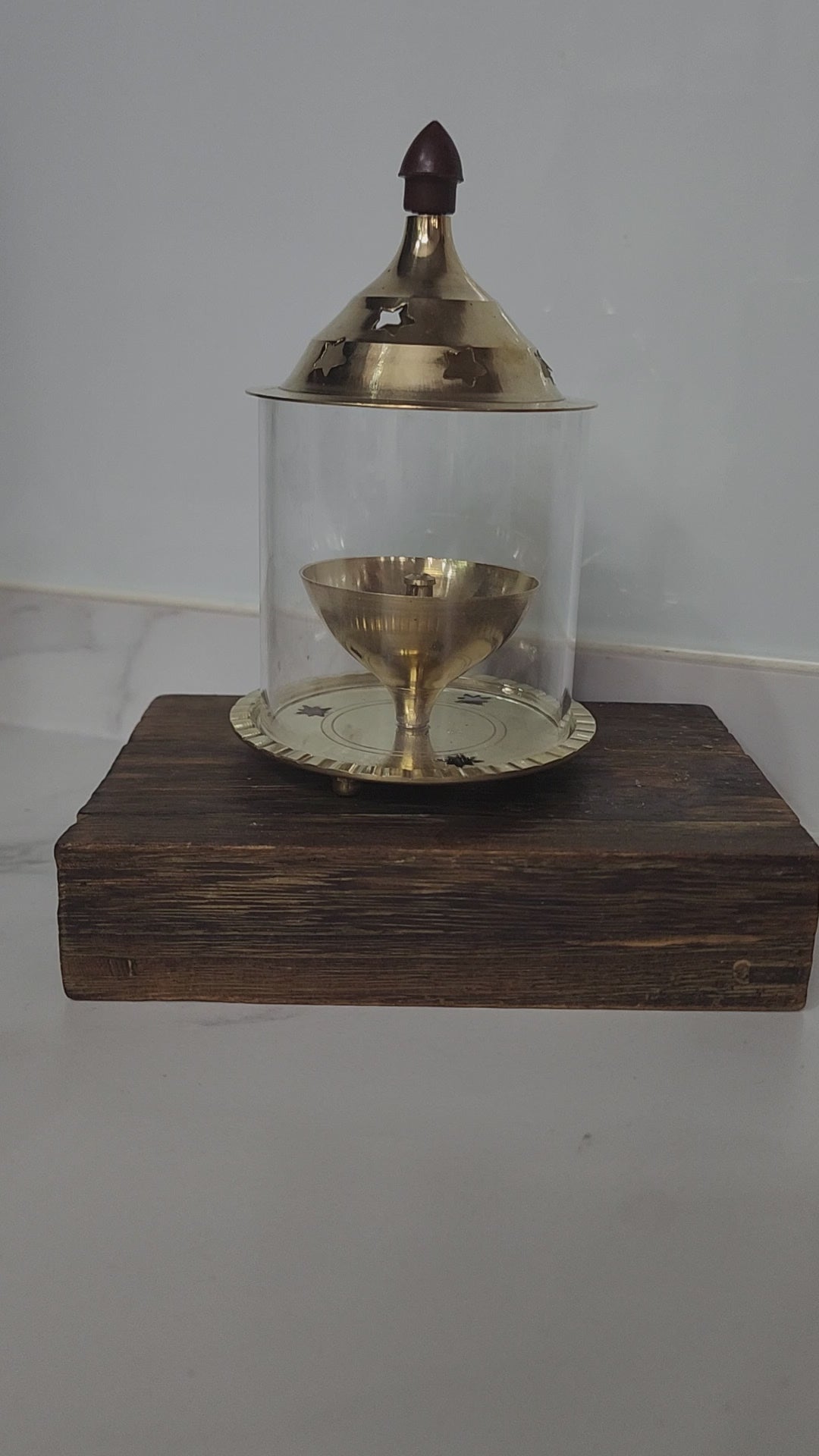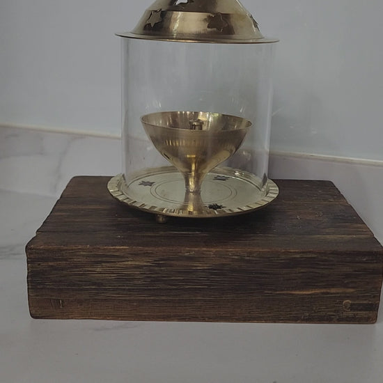 Brass Diya with Circular Glass Cover – Elegant Traditional Lamp