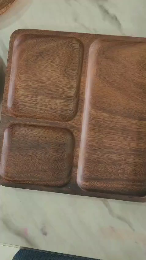 Serve in style with our handcrafted Luxury Walnut Wood Dinner Plate, designed with three compartments for an elegant and practical dining experience.