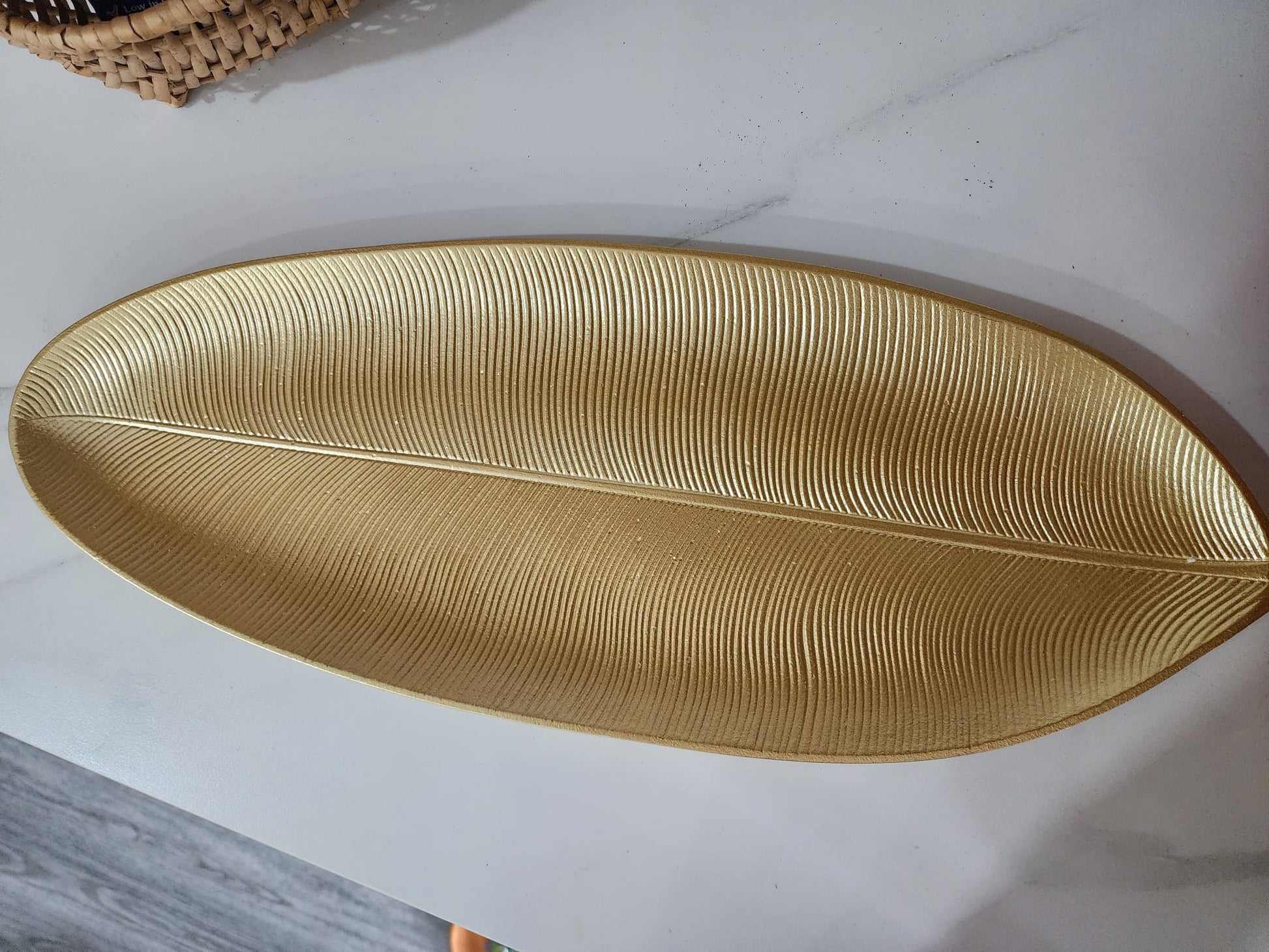 Bring a touch of tropical elegance to your table with this modern Golden Leaf Shape Food Serving Tray. Made from premium pine wood and coated with environmental-friendly golden paint, it’s perfect for serving fruits, snacks, or desserts at home, in hotels, or restaurants. The unique leaf-textured pineapple design adds style to any setting.